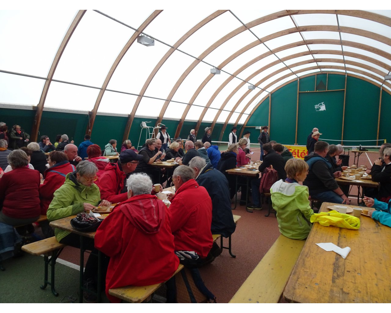 Répartis en cinq groupes cadencés sur la matinée, les participants ont pu savourer chaque étape dans une ambiance festive et solidaire. A noter que la soupe chaude en a réconforté plus d'un et que la tartiflette a redonné l'énergie pour la fin du parcours.
