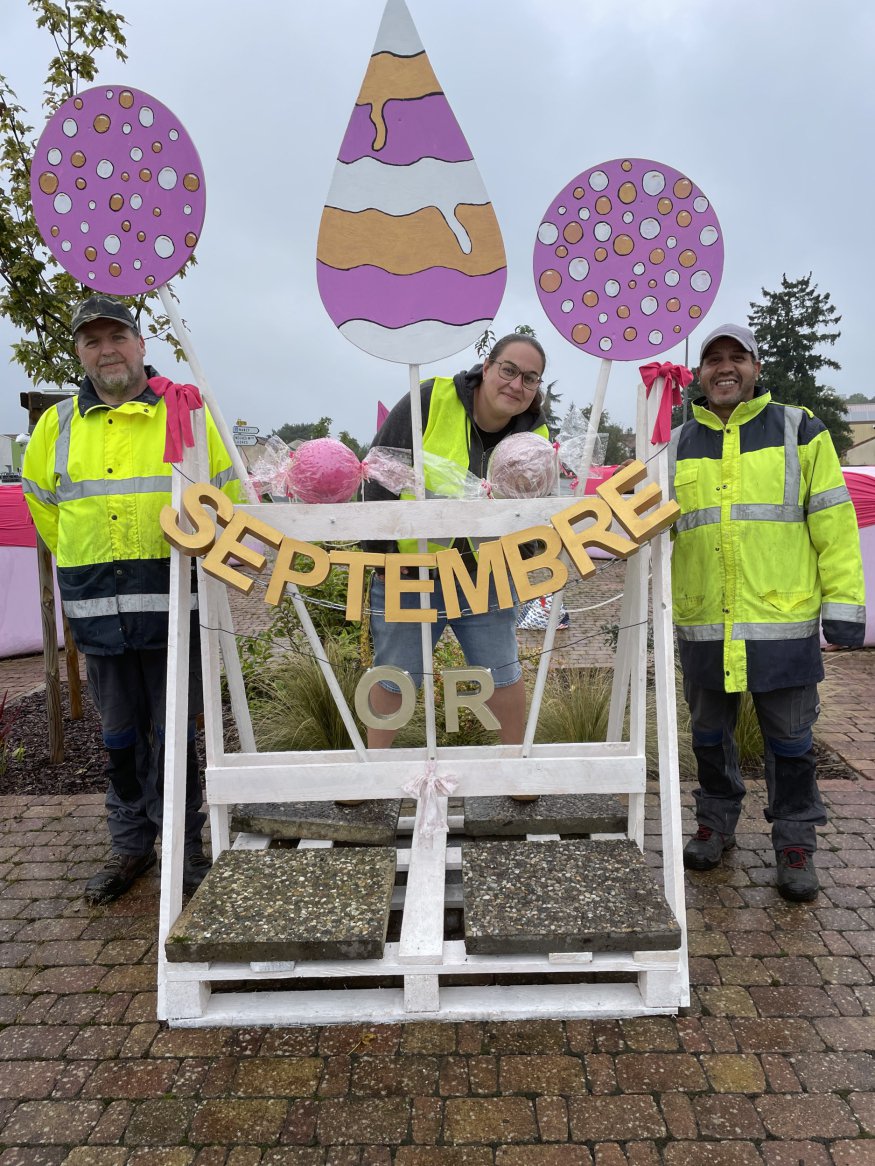 À l'occasion des campagnes Septembre en Or et Octobre Rose, en faveur de la prévention et du soutien pour les cancers de l'enfant et des femmes, la commune a paré son rond-point de couleurs vives et gourmandes. Le thème choisi, celui des sucreries, se veut résolument gai et optimiste, la sensibilisation et la réalisation a été partagée avec les enfants du périscolaire et des Francas.