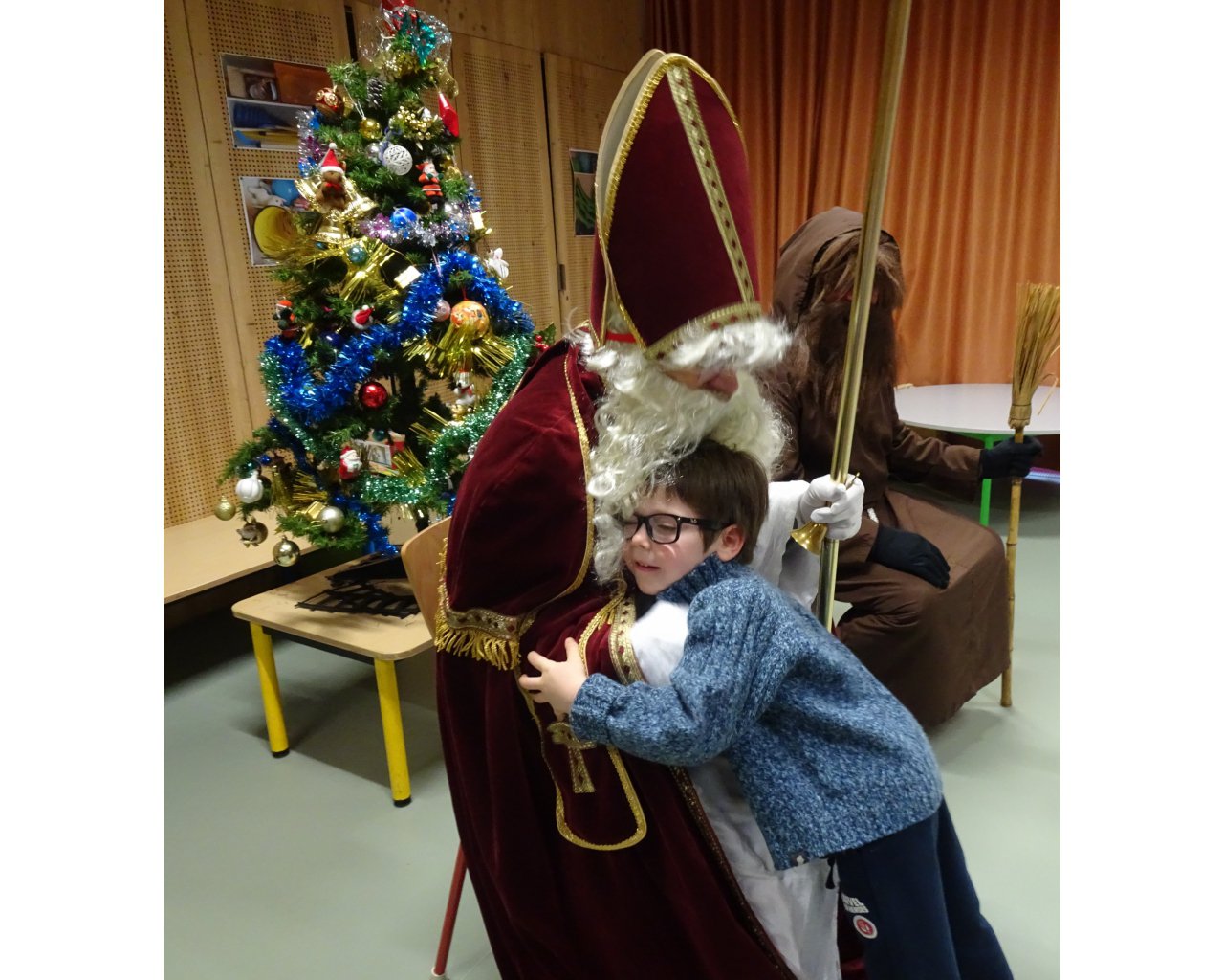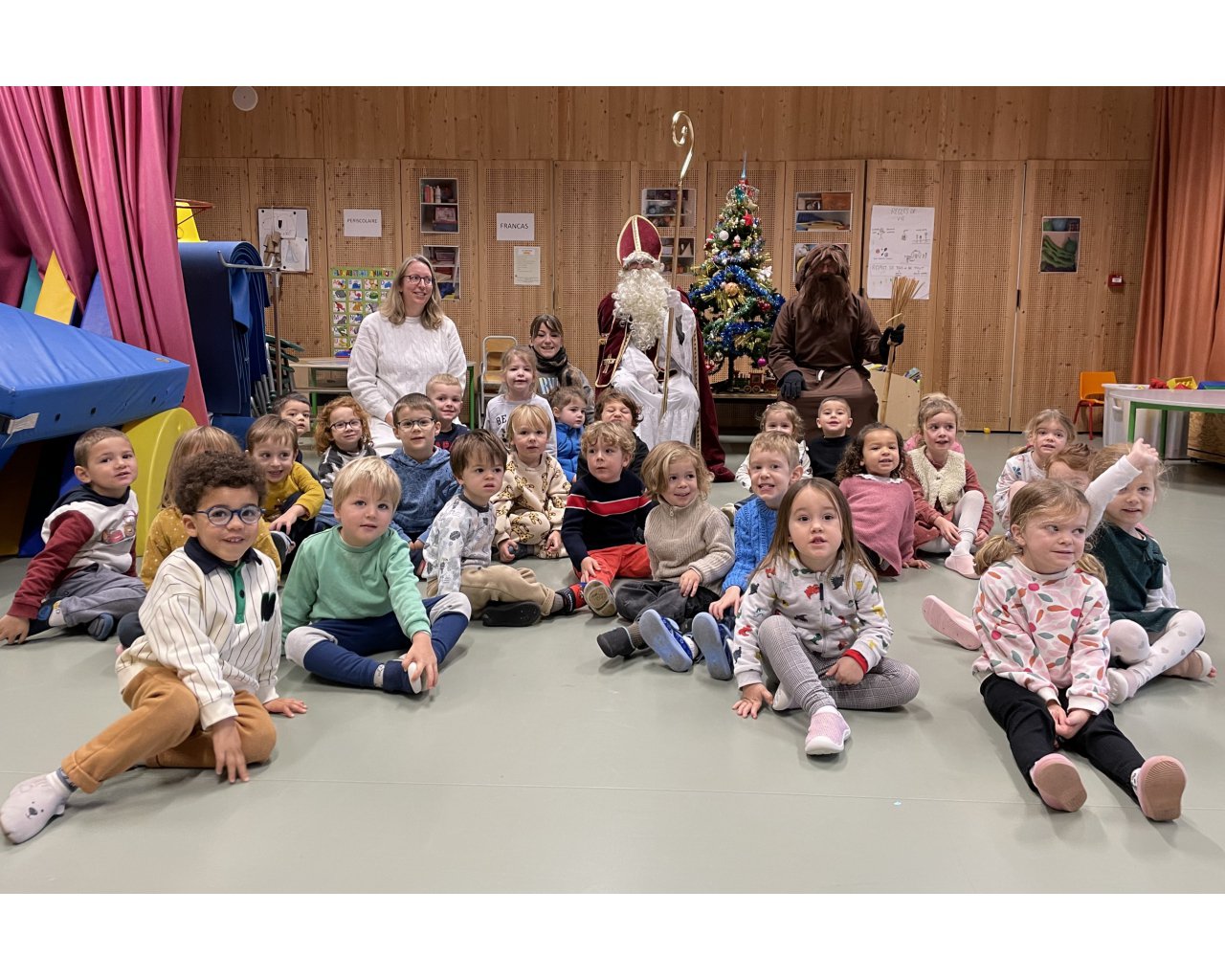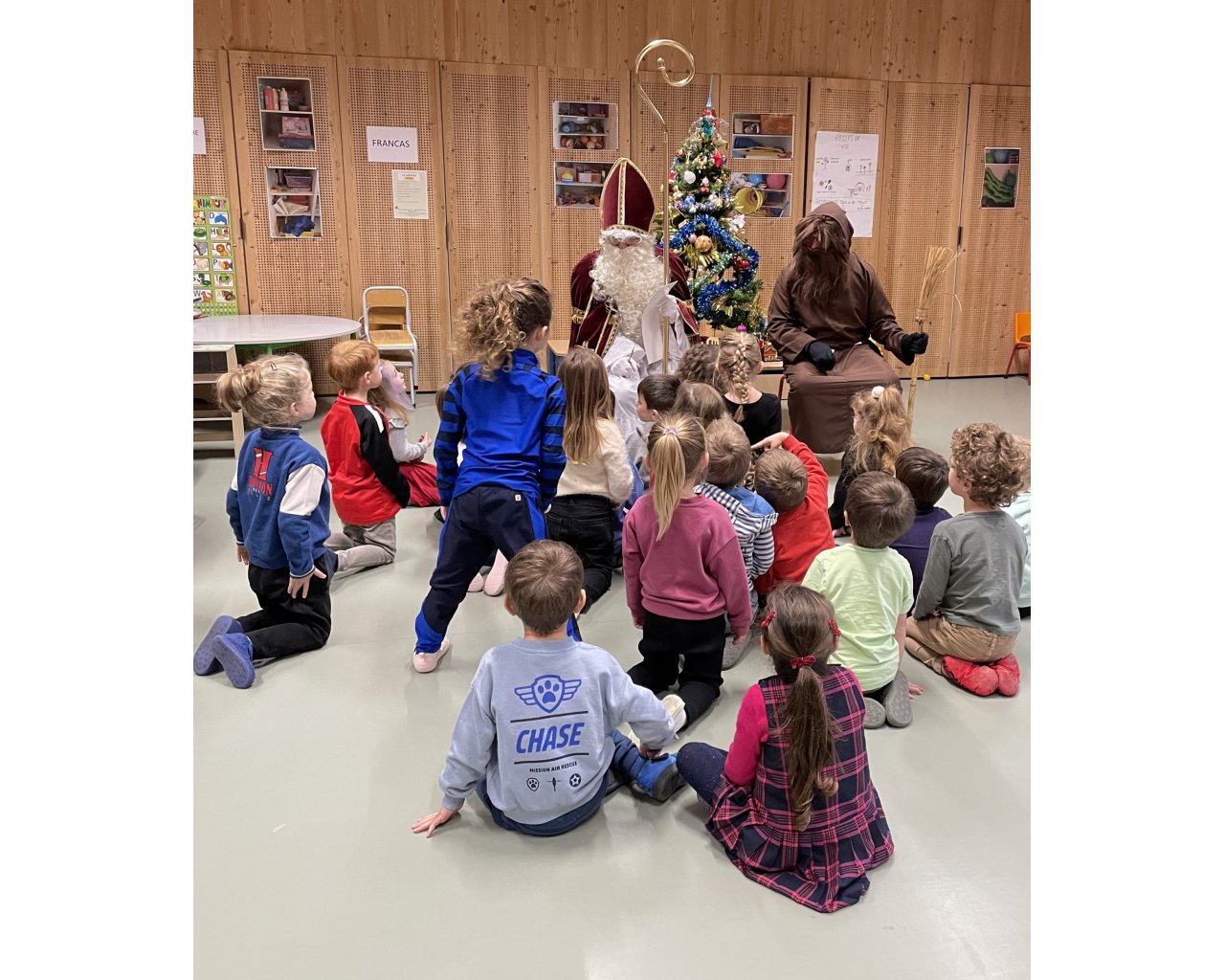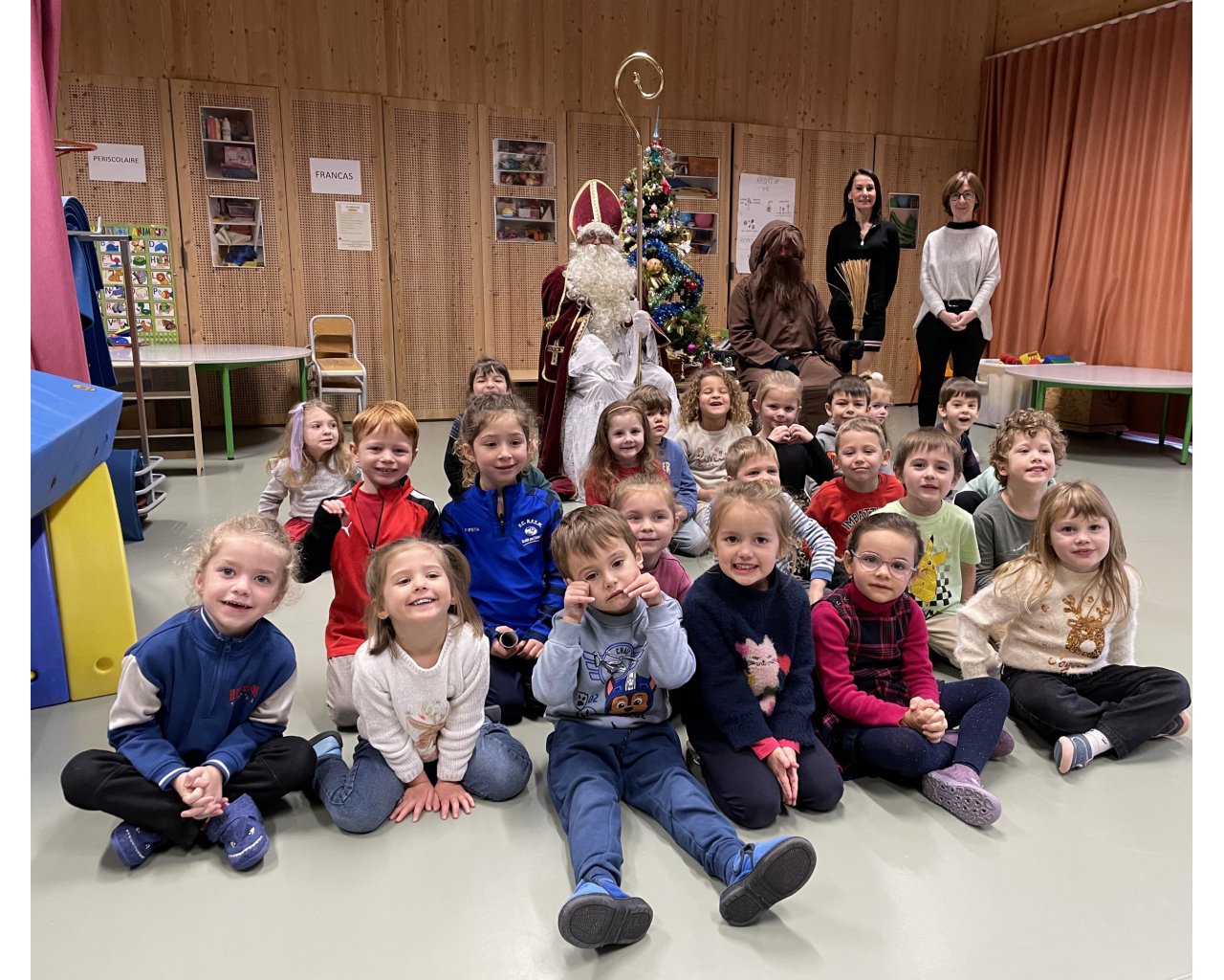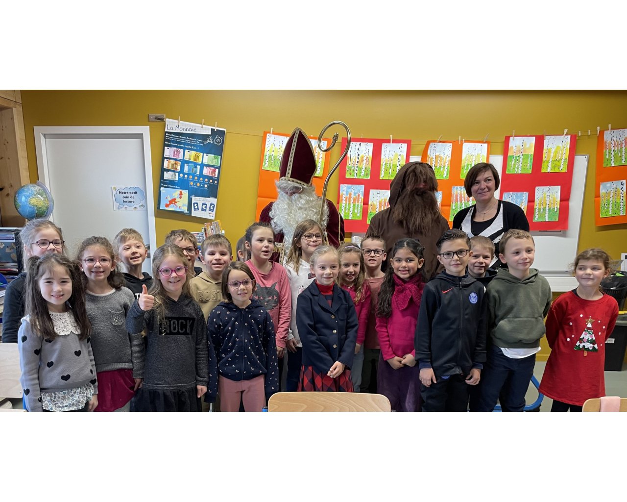 Saint Nicolas, fidèle à la tradition lorraine, a visité toutes les classes où les enfants lui ont chanté des chansons et offert leurs dessins. Même le Père Fouettard, désormais bien moins effrayant, a été chaleureusement accueilli… jusqu'à recevoir un câlin !