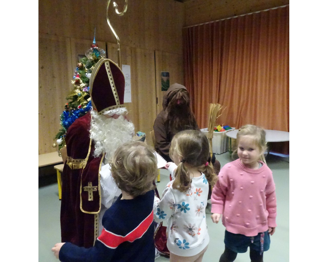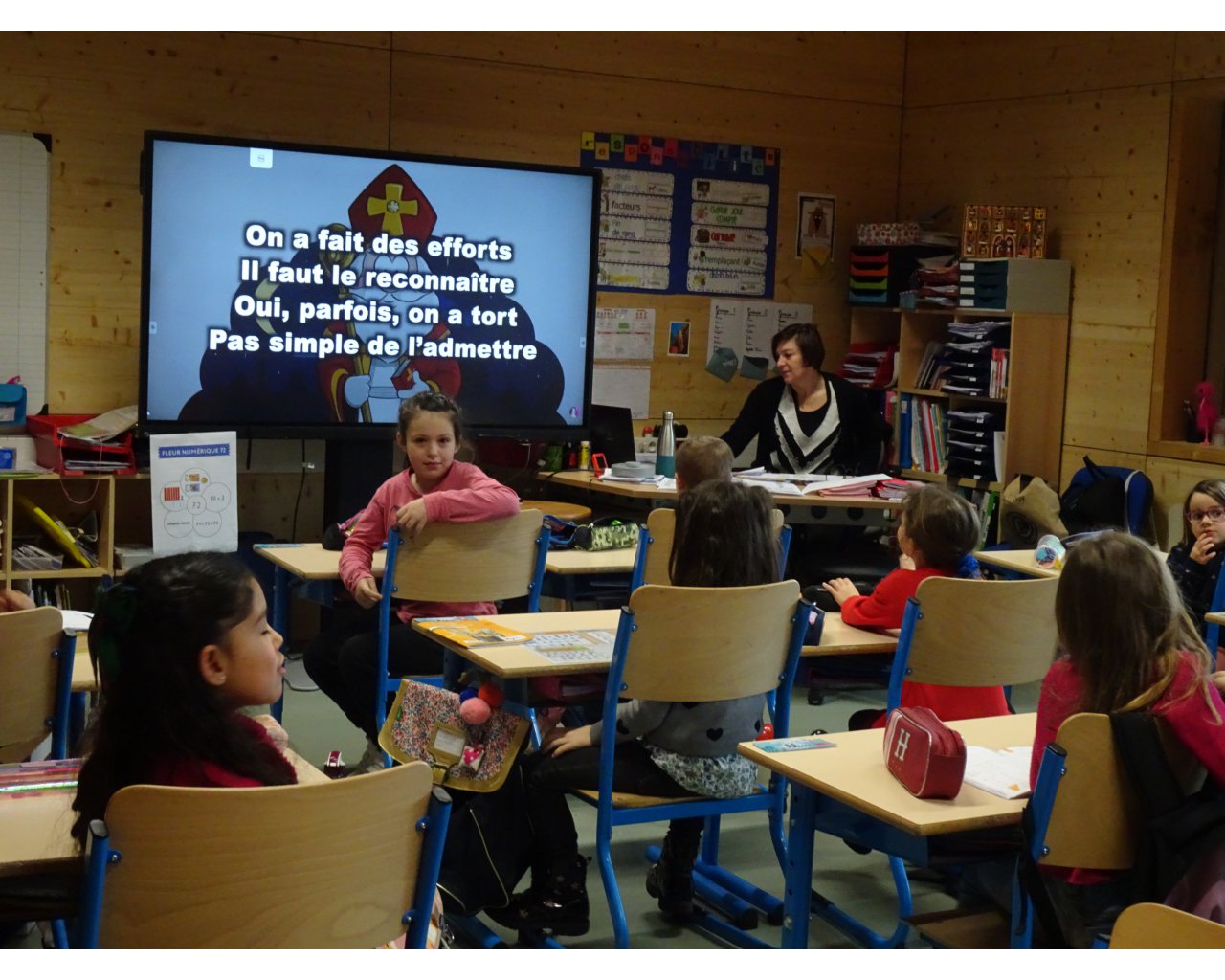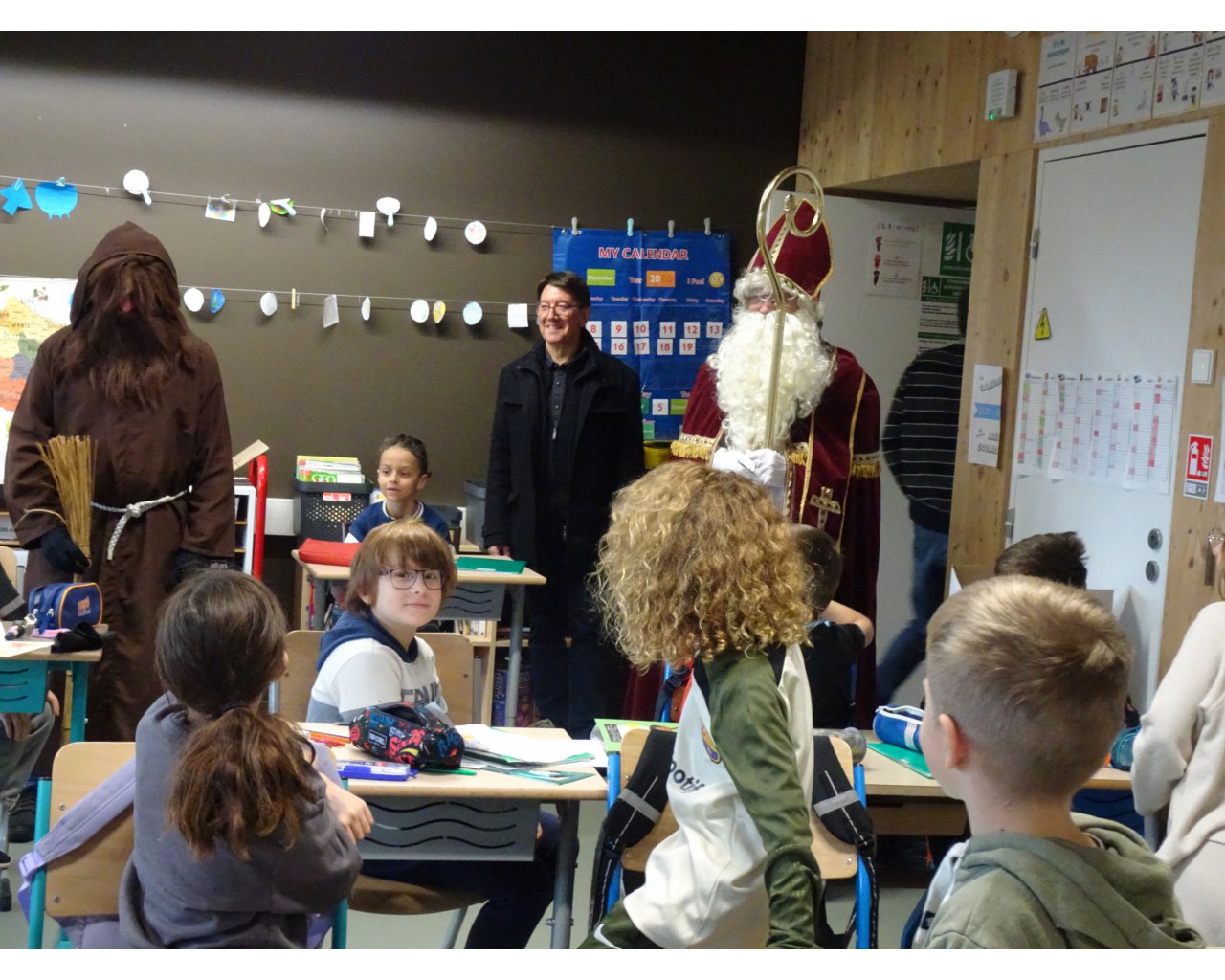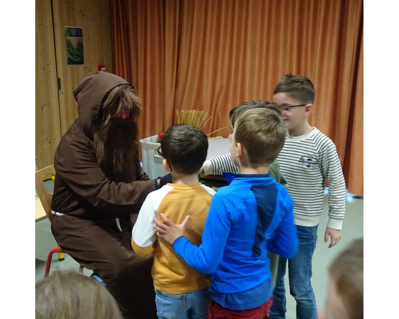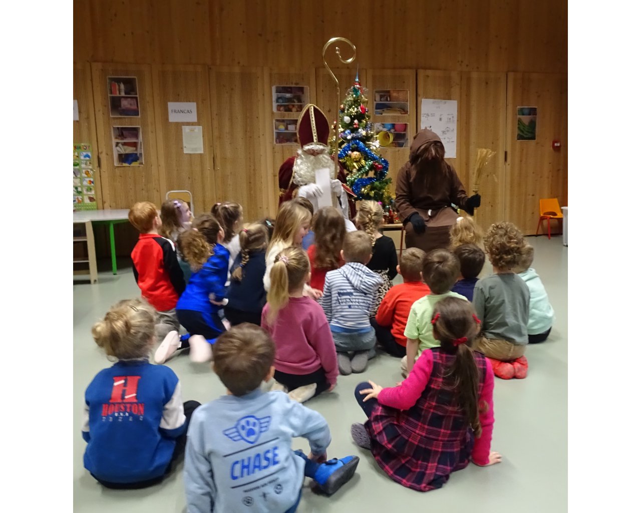 Saint Nicolas, fidèle à la tradition lorraine, a visité toutes les classes où les enfants lui ont chanté des chansons et offert leurs dessins. Même le Père Fouettard, désormais bien moins effrayant, a été chaleureusement accueilli… jusqu'à recevoir un câlin !