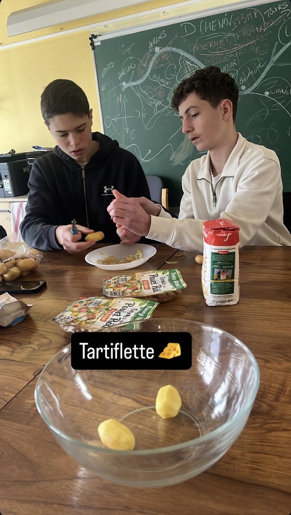 Côté cuisine, les jeunes se sont mis aux fourneaux pour préparer des cookies maison et une généreuse tartiflette, dans une ambiance chaleureuse et gourmande.