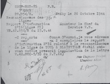 Reconnaissance de la ligne 27 Rapport d'information N°16 Etat des installations à la date du 02 octobre 1944 Renseignements généraux Les 1eréléments de l'armée Américaine ont atteint la ligne 27 à Toul le 02 septembre. Avec la prise de Blainville le 13 septembre la ligne était entièrement libérée. A cours de la retraite l'ennemi a procédé à de nombreuses et graves destructions qu'ont aggravées les bombardements aériens et par artillerie ainsi que les mitraillages des armées en présence. |